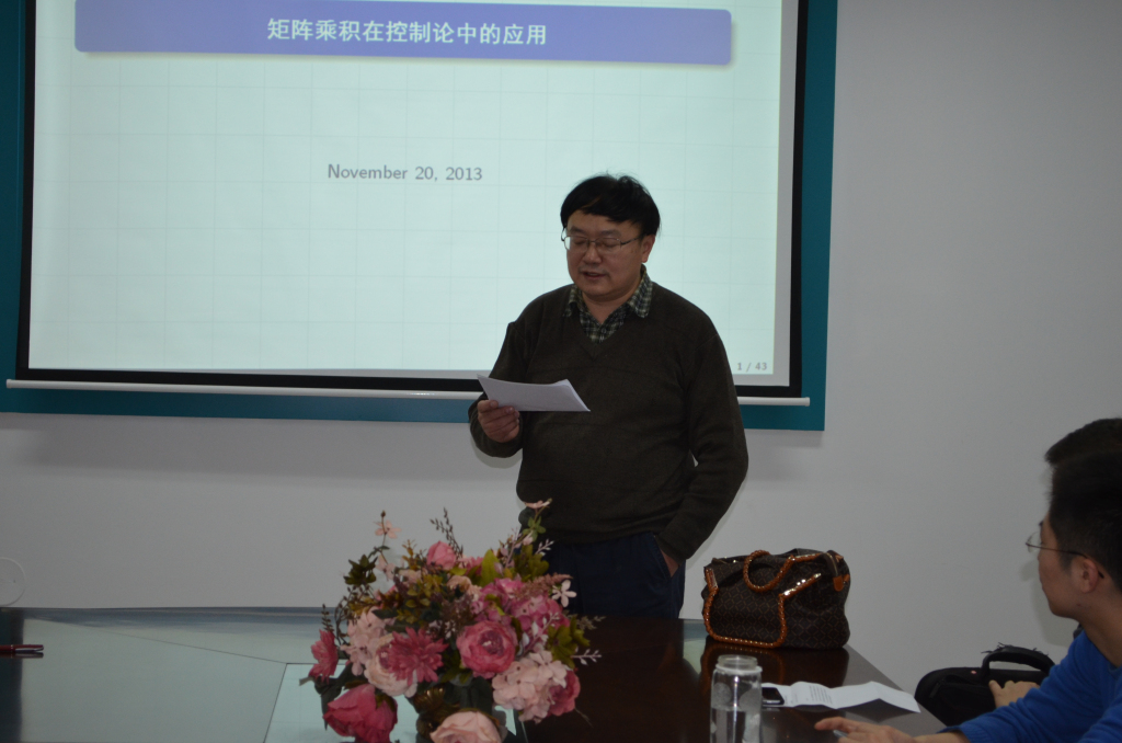 2014年11月11日上午 8:30-9:30,山东大学188BET金宝搏官网冯俊娥教授在格物楼503做了题为《各种矩阵乘积在控制理论中的应用》的学术报告,报告由田波平教授主持,数学系十余位师生听取了报告并进行了热烈的讨论。