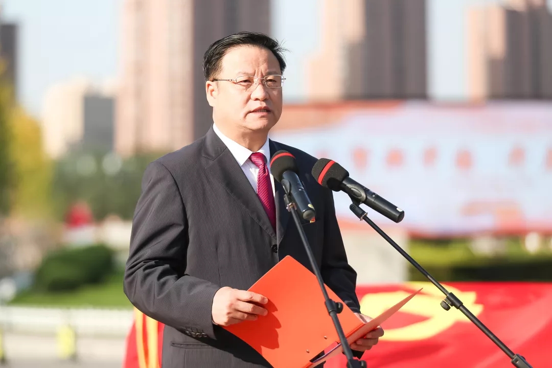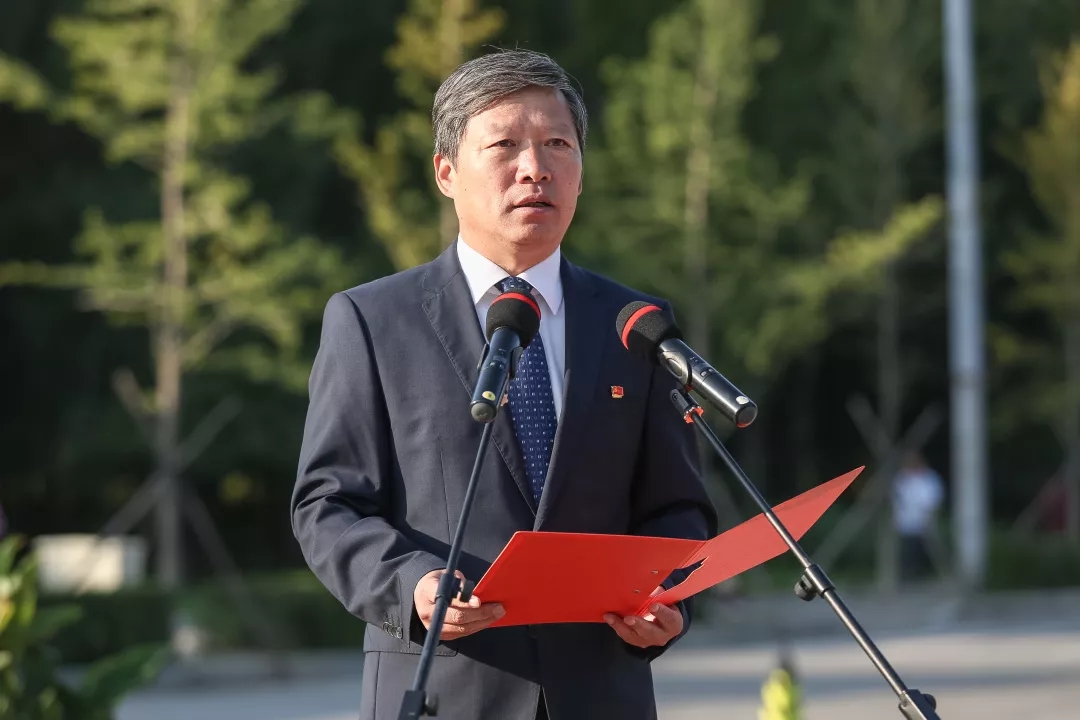 党委书记翟文豹出席升旗仪式并发表讲话。