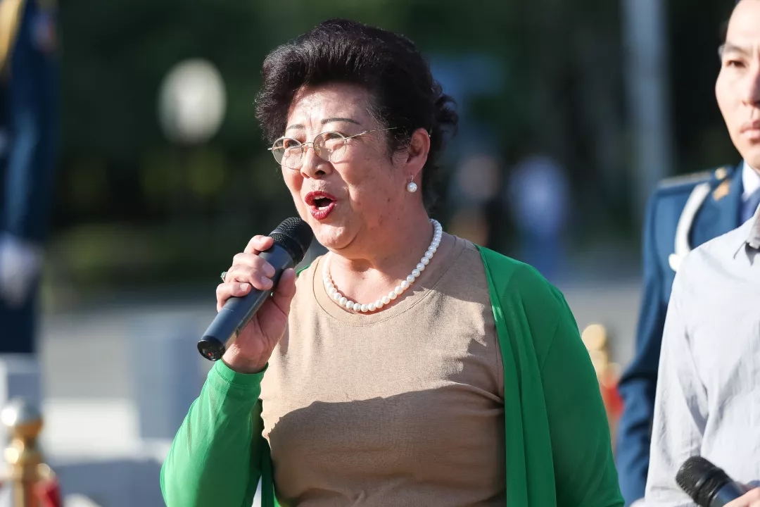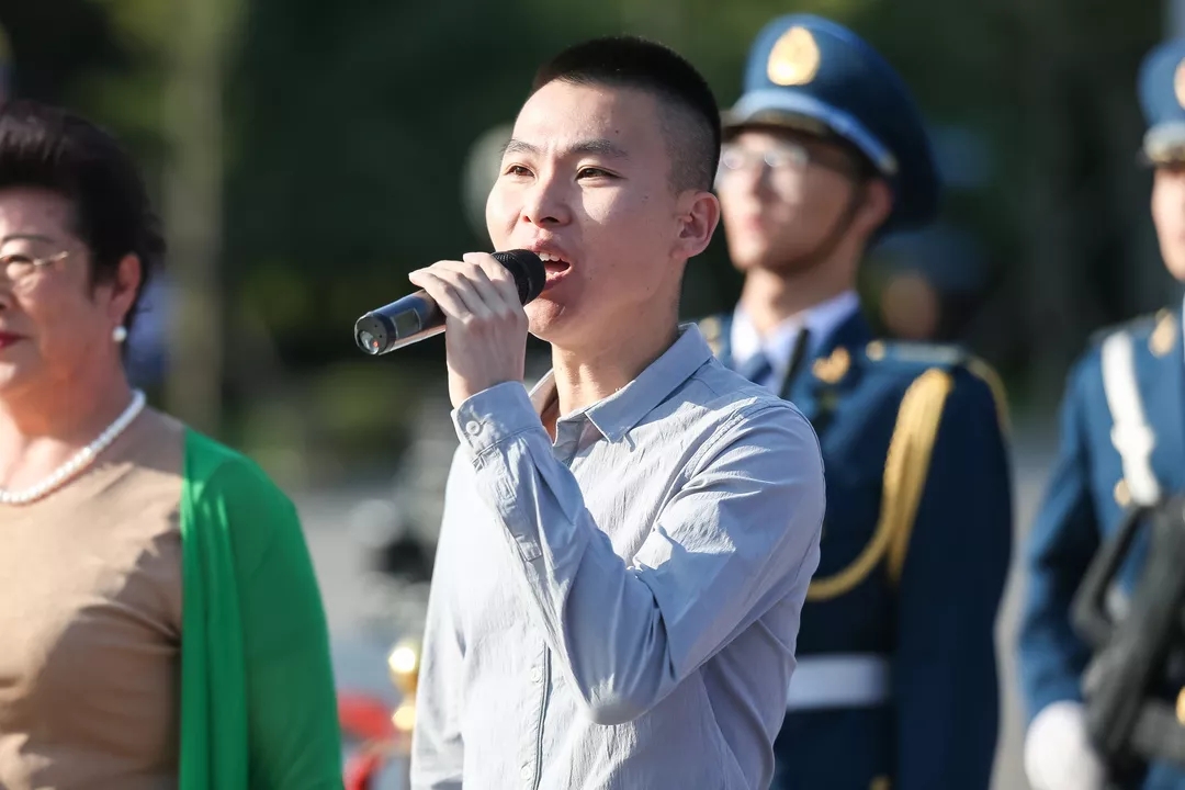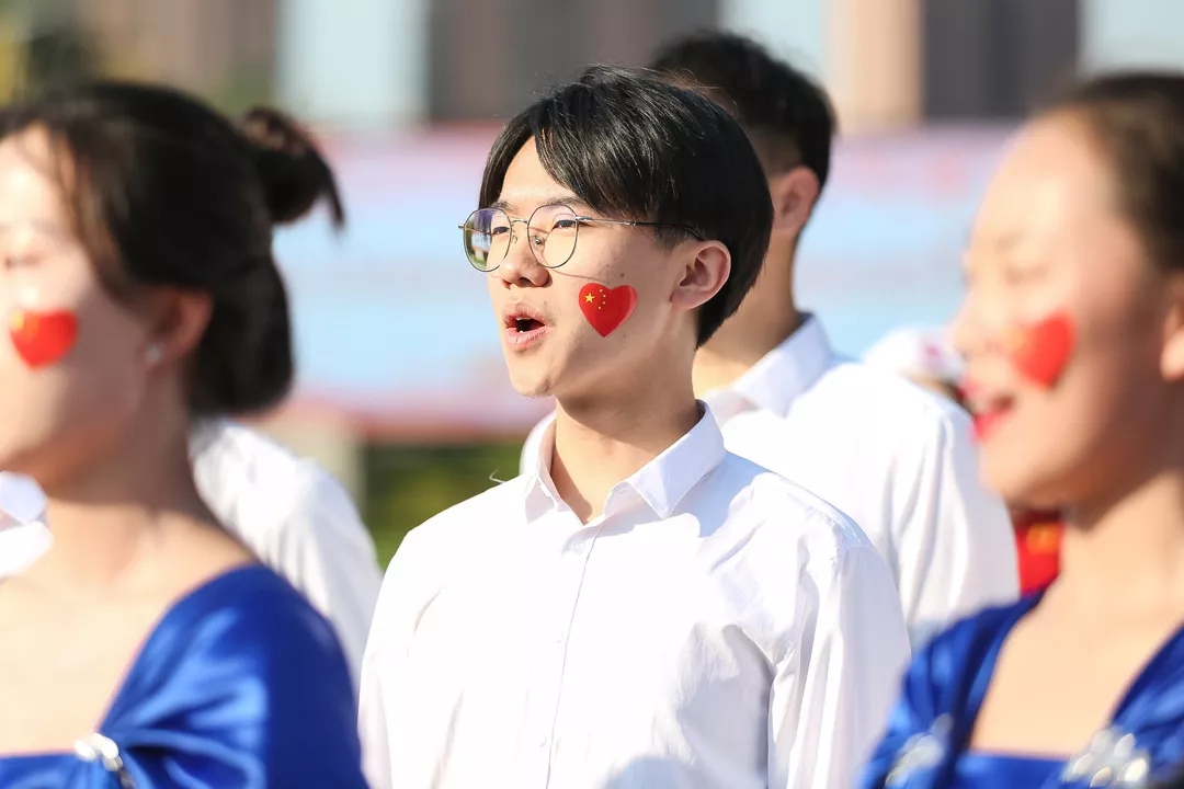 升旗仪式上,退休教师代表、教师代表、教职工家属代表和校合唱团与在场师生共同唱响《歌唱祖国》,“歌唱我们亲爱的祖国,从今走向繁荣富强!”响彻升旗广场,嘹亮歌声燃起了沈航人的爱国情、报国志!