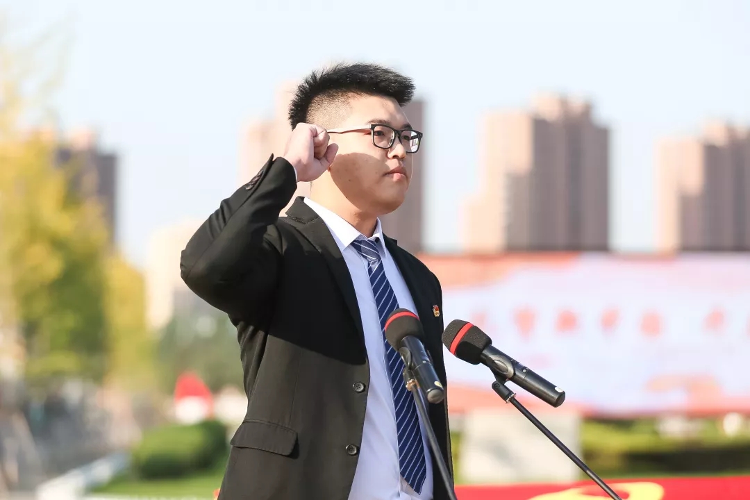 学生代表谢红俭发言并带领学生宣誓。铮铮誓言,时刻提醒沈航学子要爱党、爱国、爱校,用青春追逐梦想,用奋斗书写人生,为祖国建设贡献青春力量。