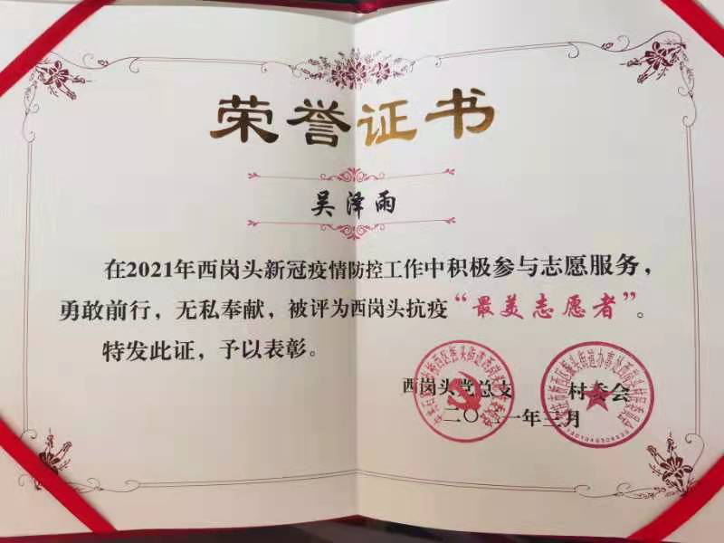 社会实践标兵——吴泽雨
