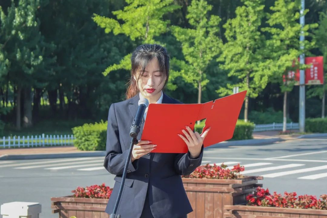 学生代表,2020级本科生孟佳昕在国旗下的演讲中首先回顾了自己入学以来的三年经历,从启航、求索、成长三个方面讲述了在沈航的难忘瞬间,总结了自己在沈航的学习生涯中的成长与收获。她号召全体同学勤奋学习,刻苦钻研,凝聚共识,坚定信心,不断践行绿色发展理念,为推动学校高质量发展贡献能环的青春力量。