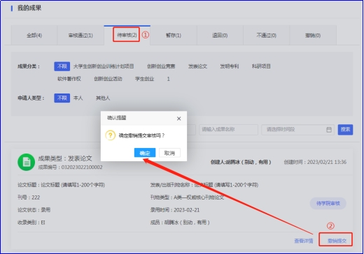 提交审核后,如果成果未审核状态,可以撤销再次提交。
