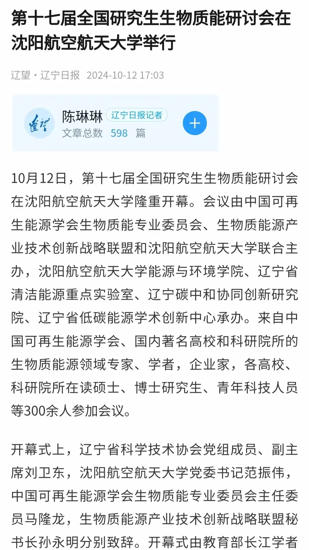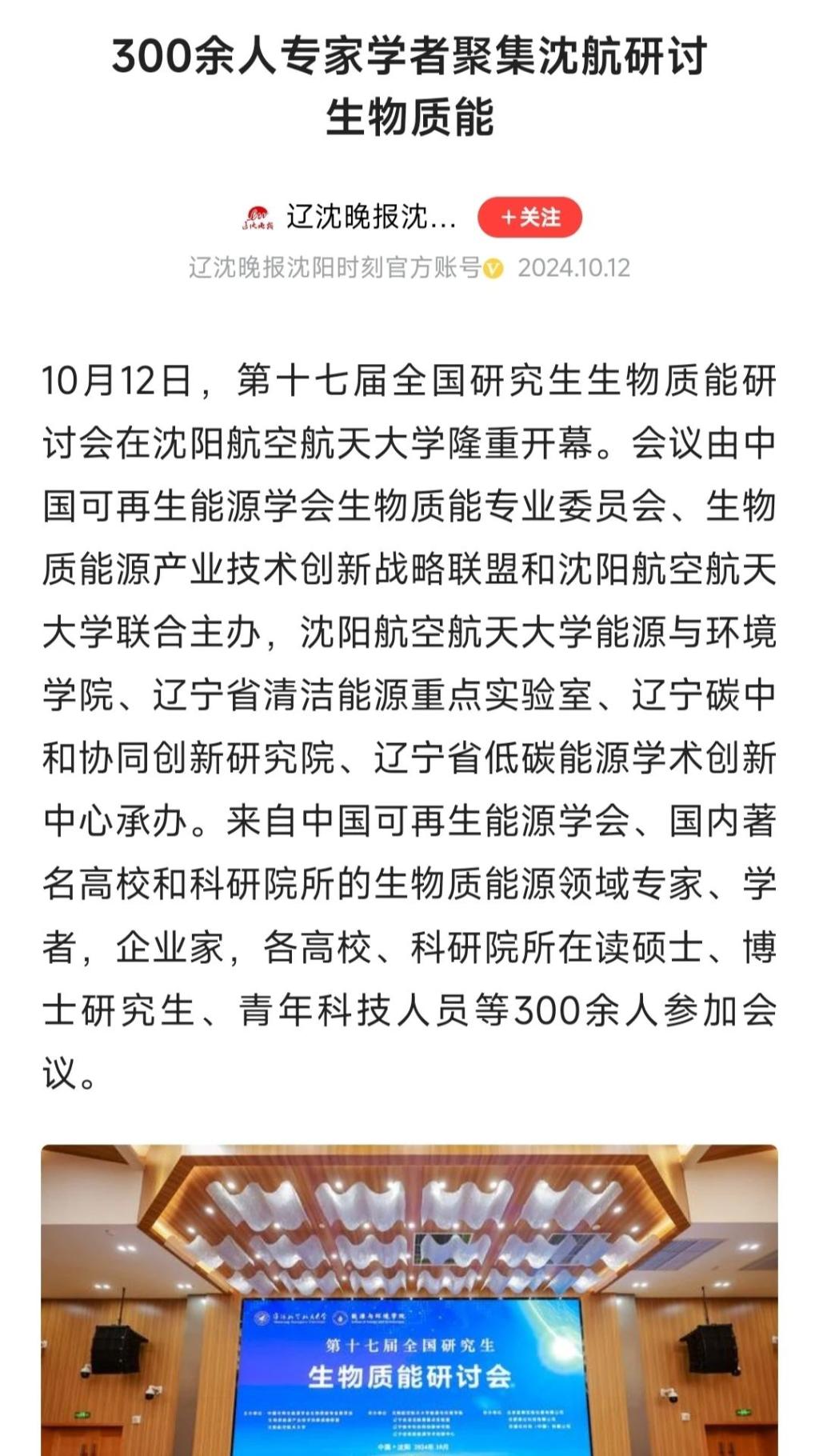 10月12日,第十七届全国研究生生物质能研讨会在beat365在线唯一官网隆重开幕。会议由中国可再生能源学会生物质能专业委员会、生物质能源产业技术创新战略联盟和beat365在线唯一官网联合主办,beat365在线唯一官网beat365在线唯一官网、辽宁省清洁能源重点实验室、辽宁碳中和协同创新研究院、辽宁省低碳能源学术创新中心承办。来自中国可再生能源学会、国内著名高校和科研院所的生物质能源领域专家、学者,企业家,各高校、科研院所在读硕士、博士研究生、青年科技人员等300余人参加会议。
