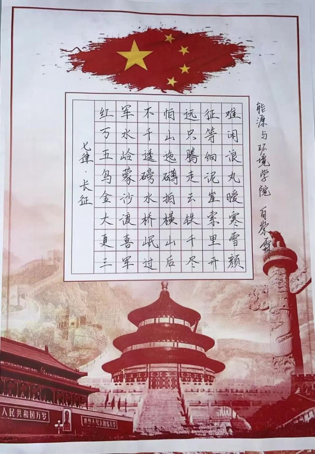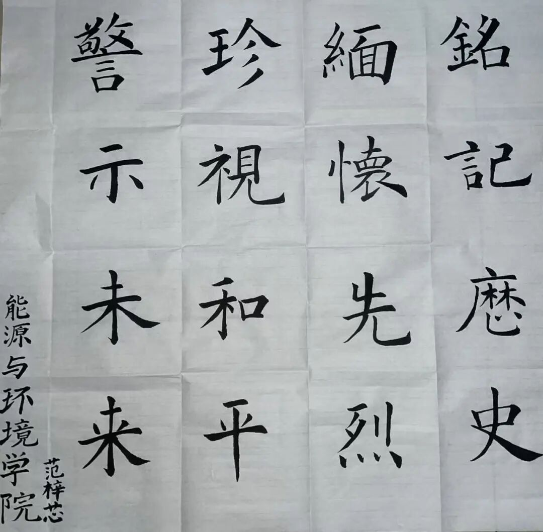 在“笔墨寄情”环节,能环学生以传统毛笔书写为载体,将对历史的缅怀落于宣纸之上。那些百折不挠,视死如归的抗争,我们从未忘记,“铭记历史”、“振兴中华”、“吾辈自强”等字样次第铺展,每一笔都凝聚着对先辈的追思,每一字都传递着新时代青年守护和平、砥砺奋进的决心。